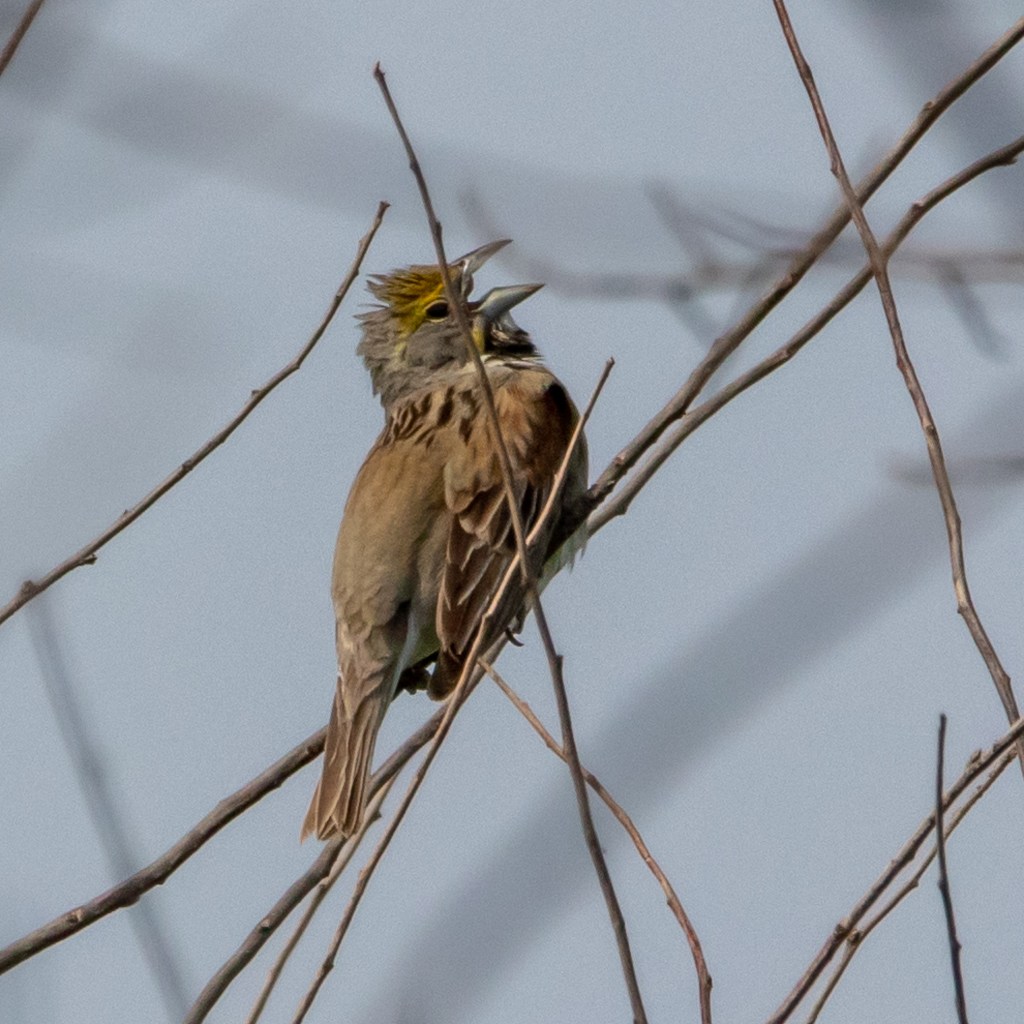 He obligingly sang from a tree branch in roughly the same spot I’d been at earlier. Having looked at my shots later at home, I believe I saw two Dickcissels, the one a textbook yellow-breasted male and the other a duller brown with some yellow streaking.