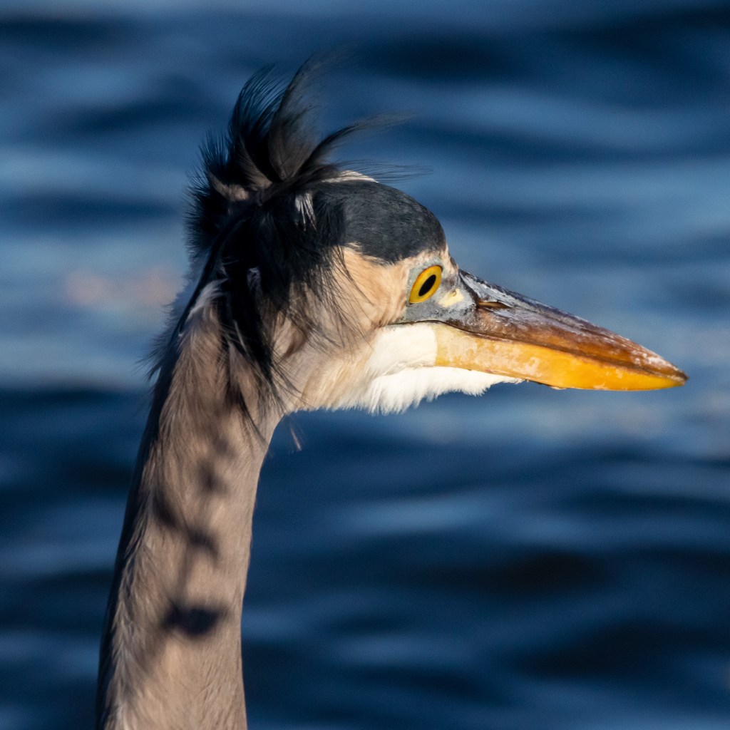 I didn’t spot any eagles and turned back because the weather was so unpleasant. To my surprise, a great blue heron was standing on the shore maybe 15 feet from me as I made my way up the walkway. I snapped a couple of shots (one tops this post), wished the heron well and then retreated to the warmth of my car. I’m not nearly as hardy as that heron!