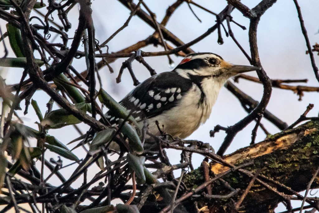 Yet there are sights to see and appreciate, such as huge flocks of blackbirds and long strings of snow geese flying overhead. Dark-eyed juncos dart from path to brush as I approach them. Save for the papery tan leaves of the beech trees, most of the woods are bare, affording clear views of the woodpeckers — downy, hairy and red-bellied — tapping and hammering above me.