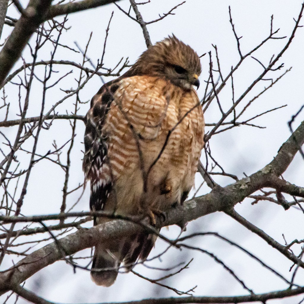 It slowly occurred to me that what I was hearing was the blue jay imitating the hawk. A short while, after I’d moved a few hundred yards along the trail, the red-shouldered hawk flew overhead.