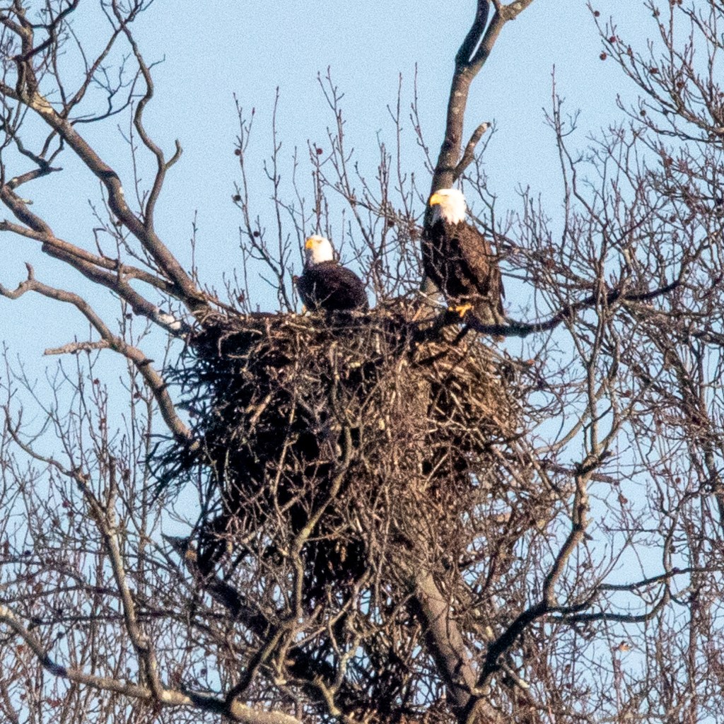 For the best viewing overall, I recommend that you head to the West Picnic Area and park at the end of the lot, near the big shelter. From there, walk to the left along the trail that skirts the lake. A few “eagle viewing” signs will point you to a stretch of the shore from which you can look across the lake to the aerie of the breeding pair.
