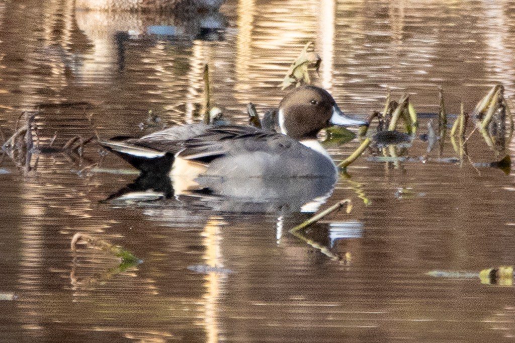 We skirted the lot and walked to the marsh that’s separated from Silver Lake by the path that encircles it. I finally had reason to start shooting some photos as a flock of Northern pintails took flight. Also on the water were mallards, green-winged teals and Northern shovelers.