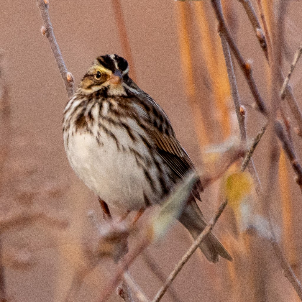 I do enjoy getting photos of the big birds of prey, but I also have a soft spot for getting photos of warblers, sparrows and other “little brown jobs.” Today, I experienced both ends of the bird-size spectrum, getting shots like that of the harrier and one of a savannah sparrow perched in a small tree amid the tall grasses.