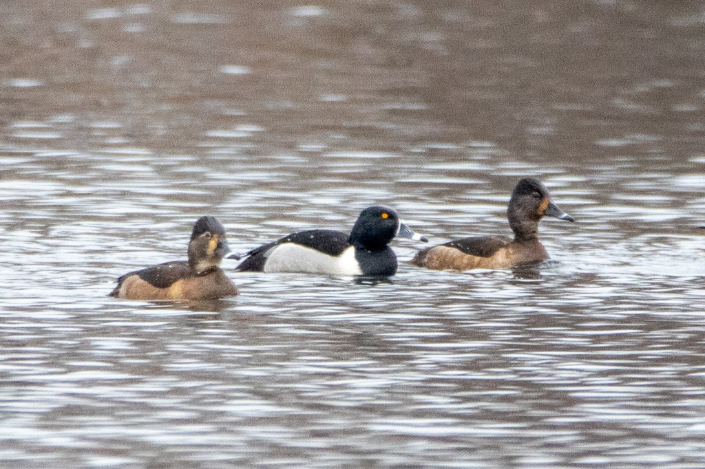 I don’t know the dimensions of the lake, but it’s essentially round and wide enough that to see birds on the water, either in the middle or on the far shore, a spotting scope is necessary. But binoculars and a telephoto lens will still serve you well. Walkaround time depends on one’s pace, but an hour is my estimate for a normal birding pace with frequent stops.