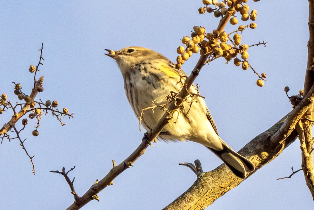 While I had trouble the other day getting a clear shot of a yellow-rumped warbler eating berries, I was able to get one this morning at the Mercer Meadows Pole Farm. I can’t say whether it was one of the birds I saw Sunday, but it was the same tree that the bird was onContinue reading “The early bird gets the berries”